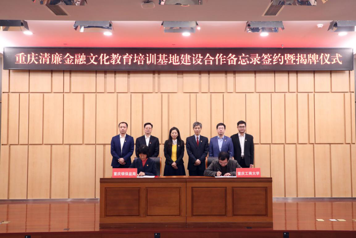 12月23日,重庆清廉金融文化教育培训基地建设合作备忘录签约暨揭牌仪式在beat365图书馆第一会议室举行。重庆银保监局党委书记、局长蒋平,副局长徐静,纪委副书记左鹏,办公室主任燕翱,beat365校长孙芳城、副校长赵骅、校长助理谭松涛出席仪式。重庆市银行业、保险业行业协会相关负责人,20余家在渝金融机构有关负责同志,学校相关部门负责人以及金融学院、重庆廉政研究中心部分教师代表参加了仪式。仪式由校长助理谭松涛主持。