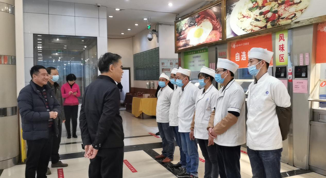 2月12日上午10时,农历大年初一,学校党委书记李志雄带领党政办公室、党委宣传部、党委保卫部、后勤处等相关部门负责人及值班干部,到保卫处、食堂、学生公寓、行政办公楼看望慰问了各部门在寒假期间坚守工作岗位的值班人员。
