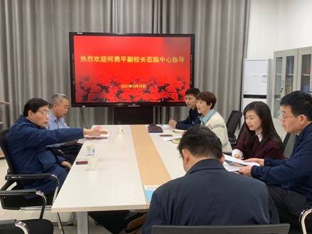 何勇平一行实地查看了经管实验教学中心拟与环境与资源学院、工商管理学院联合共建的“商+工”虚拟仿真实验室场地,听取了拟联合共建实验室的规划方案设计汇报。陈永丽、尹元福围绕部门党建与思政教育融入实验课堂、实验室建设提档升级与实验教改项目、虚拟仿真金课建设与产教融合项目、实验室特色打造与文化建设、全面提升实验教学服务水平等方面汇报了2021年工作计划及重点业务工作。王星敏、王崇均分别就“商+工”跨学科实验室建设和实验项目开发提出建议。