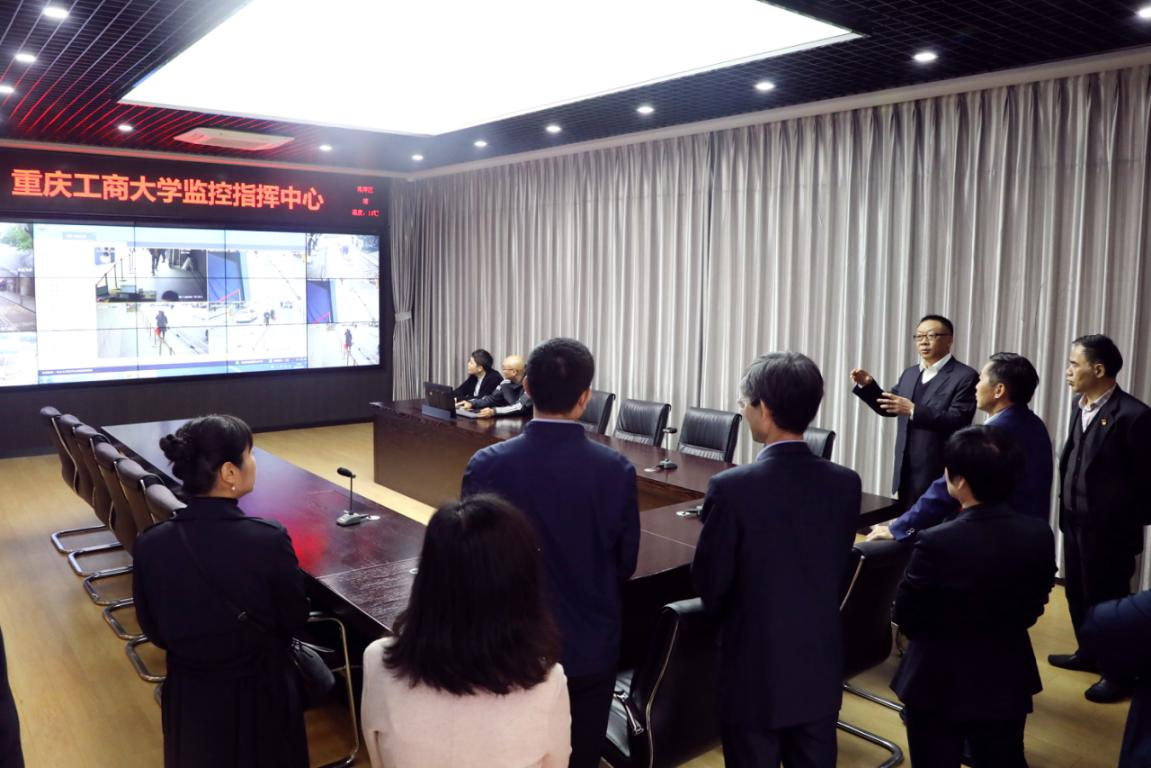 钟登华一行调研了重庆市高校网络舆情与思想动态研究咨政中心,实地参观了“小红帽”党建基地,并现场体验了beat365安全稳定人防技防工作开展场景。在调研过程中,钟登华与舆情中心专家学者、“小红帽”党建基地正在开展活动的师生进行了亲切交谈,听取了学校保卫处负责人工作汇报。