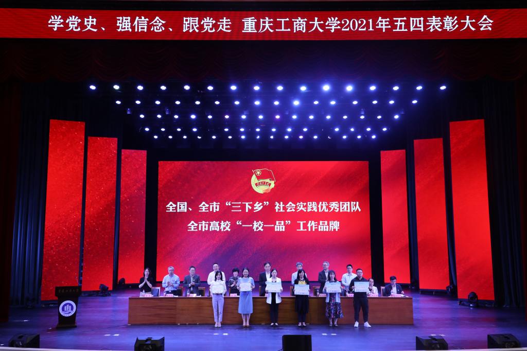 随着庄严的国歌响起,大会正式拉开序幕。大会首先由校团委书记杨娟宣读《共青团beat365英国官网网站委员会关于表彰2020-2021学年先进集体和个人的决定》,随后为获奖集体和个人代表进行颁奖,颁发奖项包括全国、重庆市社会实践活动优秀团队、重庆市高校“一校一品”优秀团学工作品牌、五四红旗团委、共青团特色创新奖、宣传工作奖、五四红旗团支部、优秀学生会、优秀义工志愿者协会、优秀分团委书记、共青团标兵、优秀团干部、优秀团员及校级“挑战杯”等奖项。