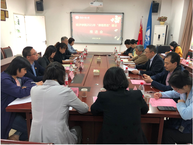为深入学习贯彻习近平新时代中国特色社会主义思想,建设课程思政协同育人教学体系,提升立德树人成效,经济学院于4月28日下午在田家炳书院404会议室召开经济学院2021年“课程思政”建设推进会。学校党委常委、党委宣传部长、学校课程思政研究中心指导委员会负责人华杰,教务处处长、学校课程思政研究中心执行委员会负责人骆东奇,经济学院党委书记李自维、副院长朱沙、长江上游经济研究中心副主任饶光明、经济学院专职组织员雷菁、各系主任、校院两级督导和教师代表参加了推进会。会议由雷菁主持。