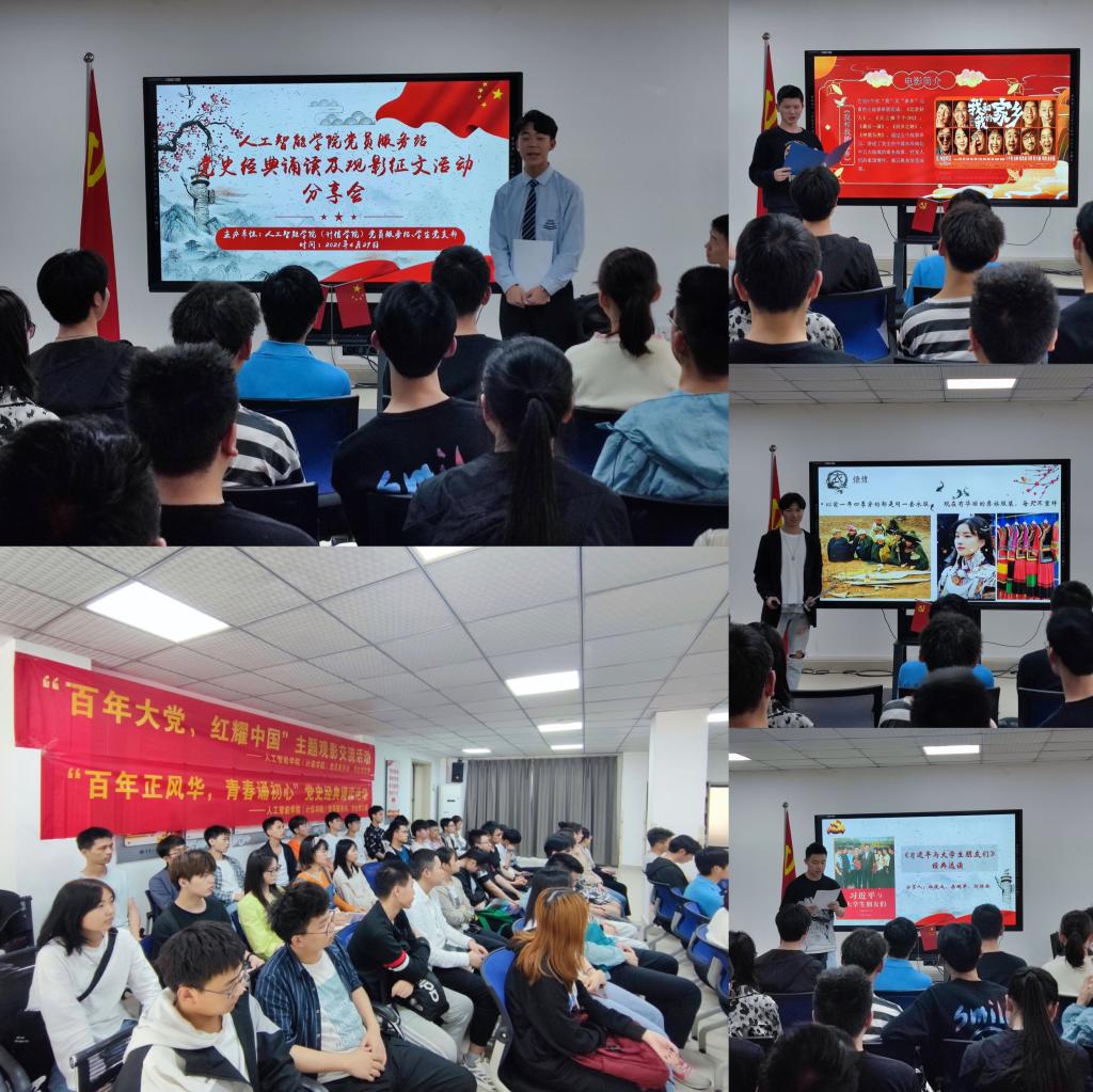 为扎实做好党史学习教育,引导学生党员、入党积极分子学党史、听党话、跟党走,人工智能学院党员服务站联合学生党支部以线上线下相结合的形式,在4月先后举办了“百年大党,红耀中国”主题观影活动、“百年正风华,青春诵初心”党史经典诵读活动,浓厚党史学习教育氛围。