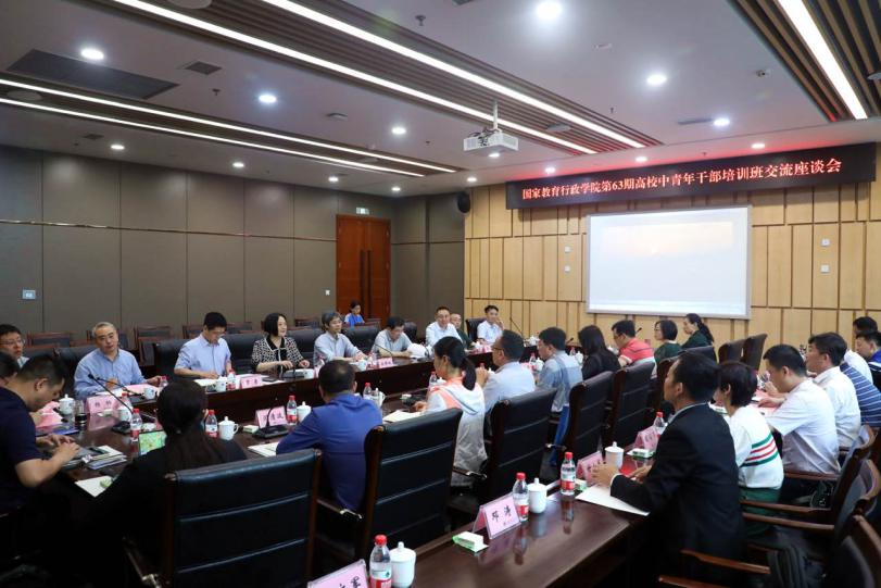 6月2日上午,国家教育行政学院第63期高校中青年干部培训班调研座谈会在beat365图书馆会议中心五会议室举行。国家教育行政学院带队教师石连海、马丽红,考察团团长杨羽、副团长李文军和相关成员共31人参加了座谈会。beat365校长孙芳城,副校长赵骅及相关职能部门负责人参加会议。会议由党委常委、党委组织部部长郑夕春主持。