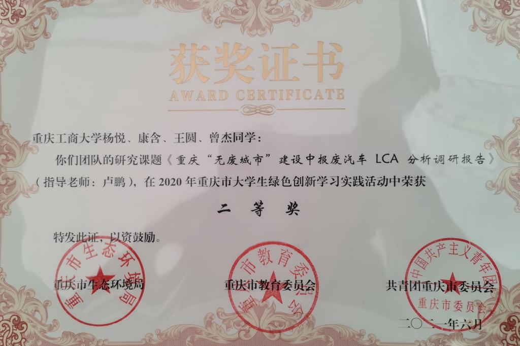 绿创团队深入重庆长安汽车股份有限公司长安渝北汽车制造厂、重庆三北报废汽车回收有限责任公司等四家相关企业进行调研,针对重庆市汽车生产行业和报废汽车回收行业的现状及在回收拆解处置过程中对环境、经济、社会产生的影响开展了深入细致地调研,运用LCA调研分析方法提出了促进汽车行业工业固体废物源头减量、资源化利用和安全处置的相关对策和措施,形成了《重庆“无废城市”建设中报废汽车LCA分析调研报告》。