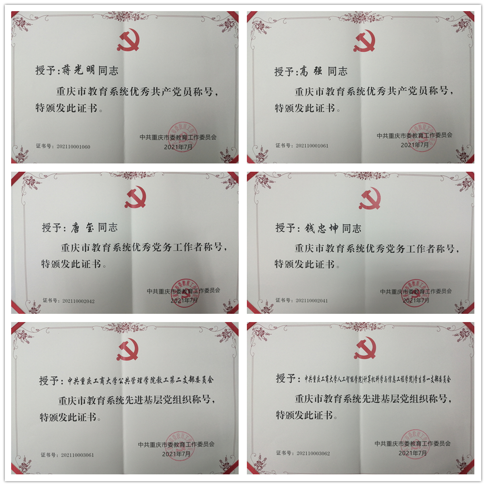 重庆市教育系统“两优一先”证书