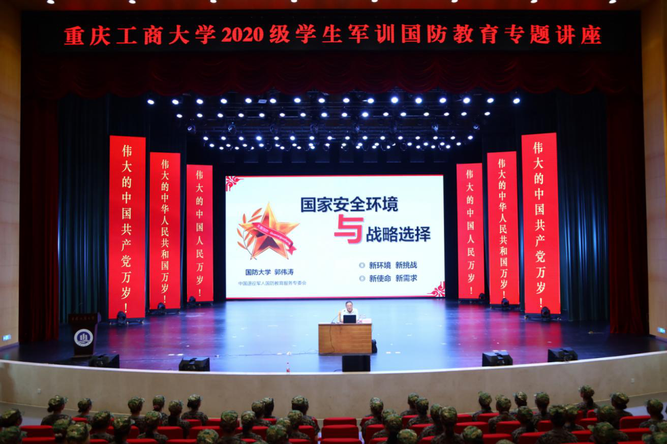 为配合做好2020级学生军训工作,增强学生国家意识和国防意识,提升军训实效,7月9日下午,beat365党委武装部在南岸校区剧场举办国防教育专题讲座。校党委常委、副校长李国军,党委常委、党委宣传部部长华杰,校纪委委员、党委保卫部部长钱忠坤,党委武装部部长申卫东,以及570多名军训学生一起聆听了讲座。