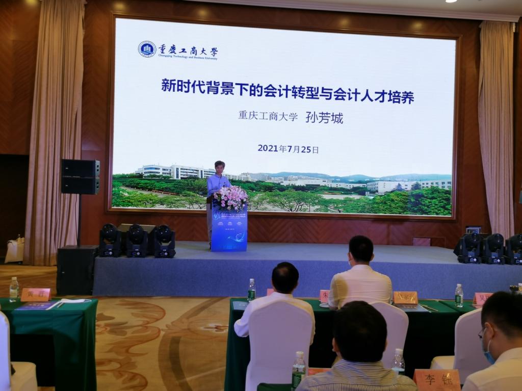 7月25日,由四川省财政厅和重庆市财政局指导,四川省会计学会和重庆市会计学会共同举办的首届“成渝地区双城经济圈新时代会计发展暨数智财务赋能企业高质量发展高峰论坛”在四川成都举行。会上举行了“成渝双城经济圈会计研究中心”揭牌仪式。财政部会计司司长吴祥云以及数百名来自川渝两地会计界的知名专家学者、大型企业财务高管出席了论坛。校长孙芳城出席论坛并作大会主题报告。
