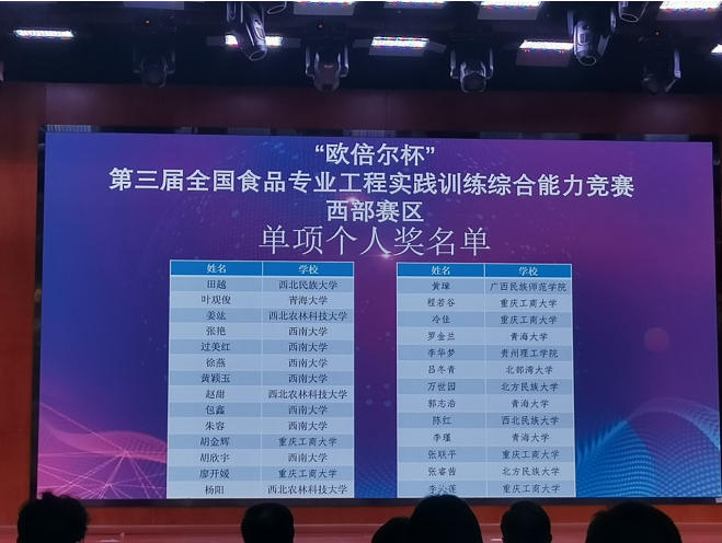 经过两场比拼,由beat365环境与资源学院食品科学与工程专业学生程若谷、胡金辉、向思怡3人组成的参赛队(指导老师:周文斌、常海军、尤琳烽)以总排名第4的成绩,荣获西部赛区团队一等奖(排第1),将参加2021年8月中旬在河北农业大学举办的全国总决赛。这也是该院参加该赛事连续三届入围全国总决赛。另外,6名同学获单项个人奖,综合实力位居参赛高校榜首。
