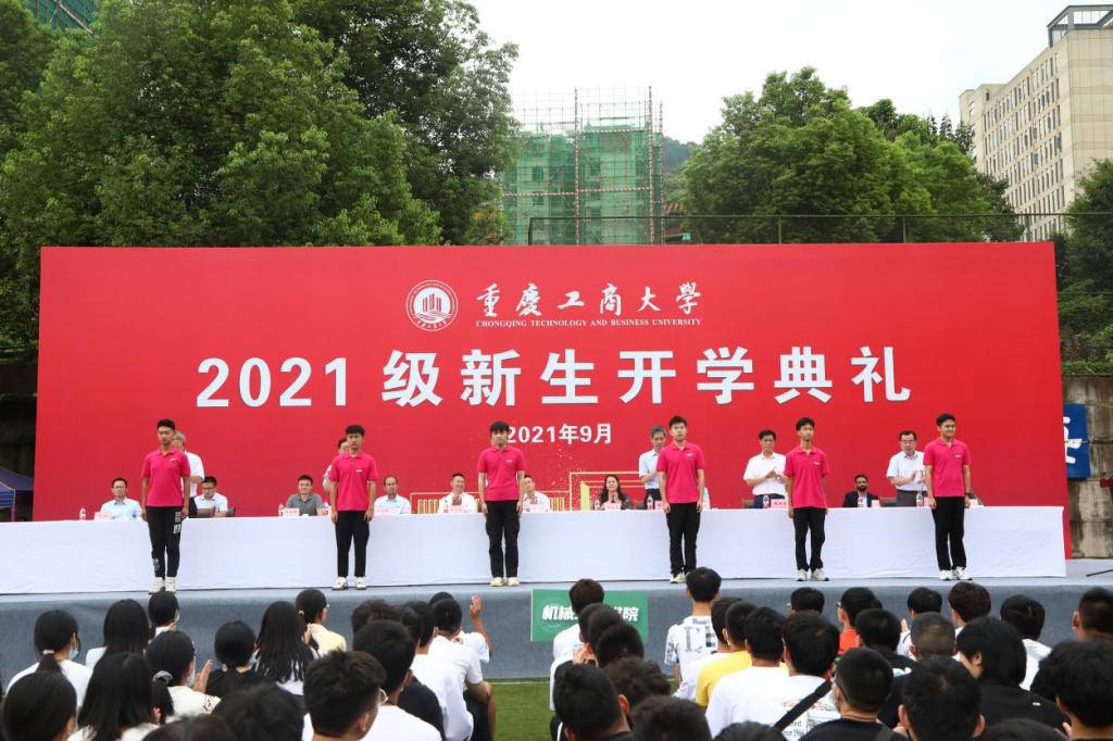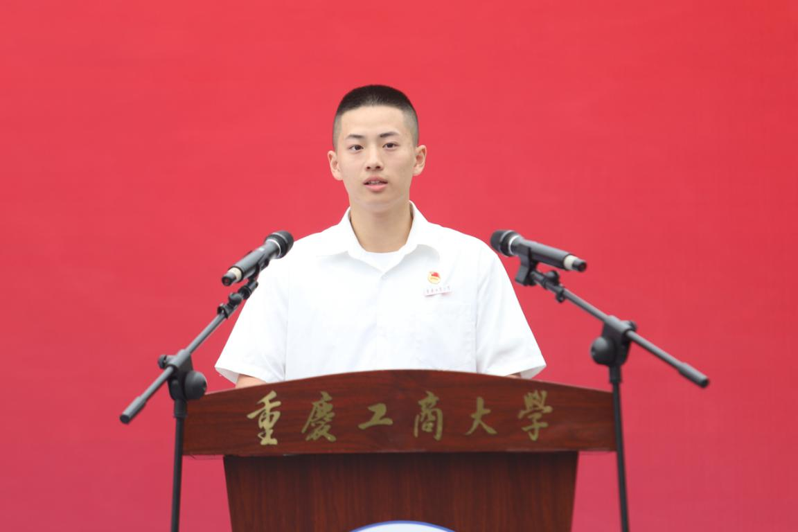江北校区2021级本科新生代表、通识学院金融学类专业李静同学,南岸校区2021级本科新生代表、国际商学院国际贸易专业杨钦钦同学和研究生新生代表、2021级产业经济学博士研究生唐菁同学先后发言。他们感谢学校的关怀、学长学姐的热心答疑、辅导员的恳切指导以及同学们的互帮互助,这让他们体会到了CTBU大家庭的温暖。他们表示,在学校即将迎来70周年校庆之际,作为新一代“重工商大人”,他们将传承“含弘自强、经邦济民”的重工商大精神,做到知行合一,学以致用;在中国共产党成立100周年之际,他们将踏上奋进新征程,放飞人生新梦想;无惧挑战,以青春之我服务青春之国家;他们将以校为荣,以我荣校,脚踏实地躬行践履;他们将扛起理想风帆,勇立时代潮头,谱写青春华章。