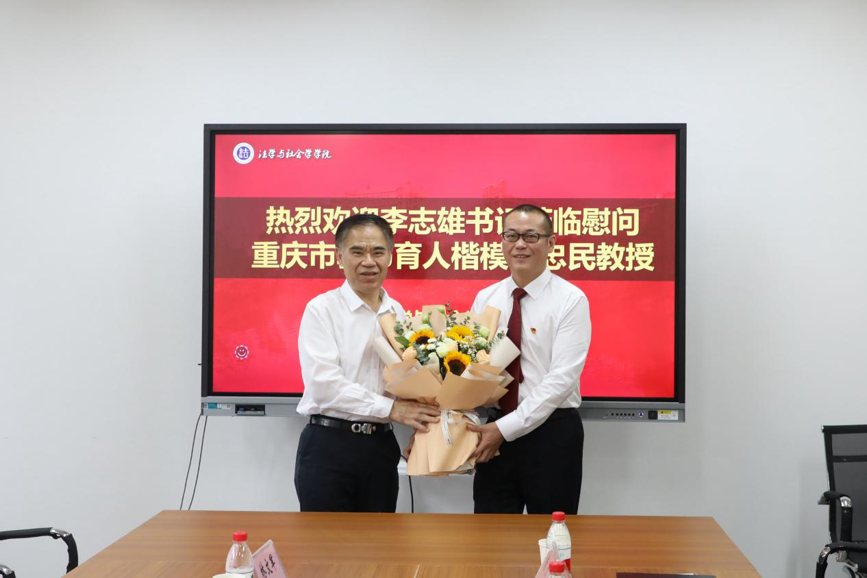 李志雄带队分别慰问了重庆市教书育人楷模、法学与社会学学院张忠民教授,高层次人才代表、废油资源化技术与装备教育部工程中心主任龚海峰教授。