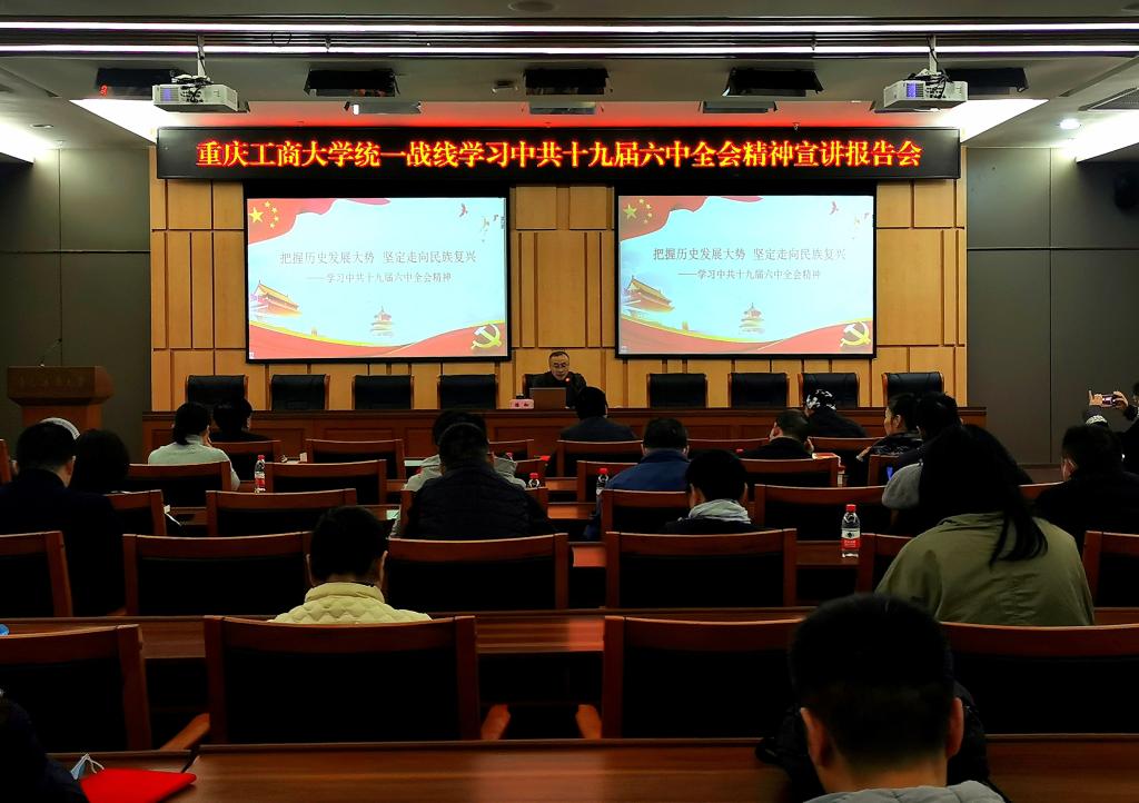 根据学校党委印发的《beat365英国官网网站关于学习宣传贯彻党的十九届六中全会精神深化拓展党史学习教育的工作方案》的安排,结合学校统一战线开展“学党史、讲《条例》、增合力、促发展”大走访大谈心活动,12月8日下午,学校党委统战部在新图书馆会议中心一会议室举办统一战线学习中共十九届六中全会精神宣讲报告会,各民主党派基层组织和统战团体班子成员及统战成员代表共计50余人参会。