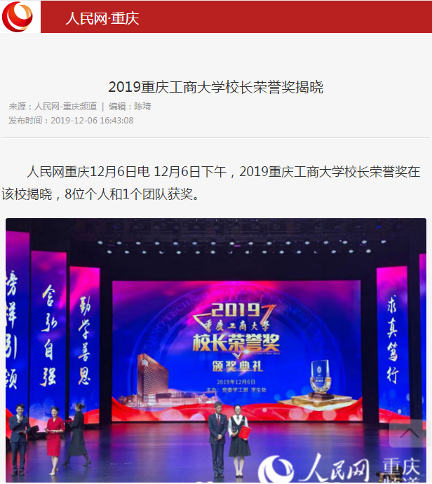 2014年学校设立beat365英国官网网站“校长荣誉奖”,并确定其为校内学生最高荣誉奖项,其目的是树立新时代人才典范,引领广大工商学子,促进大学生德、智、体、美、劳全面发展,为社会培育优秀人才。自校长荣誉奖设立以来,beat365已有29名学生个人、9个学生团队荣获此荣誉。今年学校通过全校发动、各学院积极推荐申报、工作组审核查验材料、遴选评委成员、审阅投票、考察谈话、答辩会、公示、校长办公会审定等程序,最终从20个申报者中评选出八个个人和一个团队获得2019年校长荣誉奖。