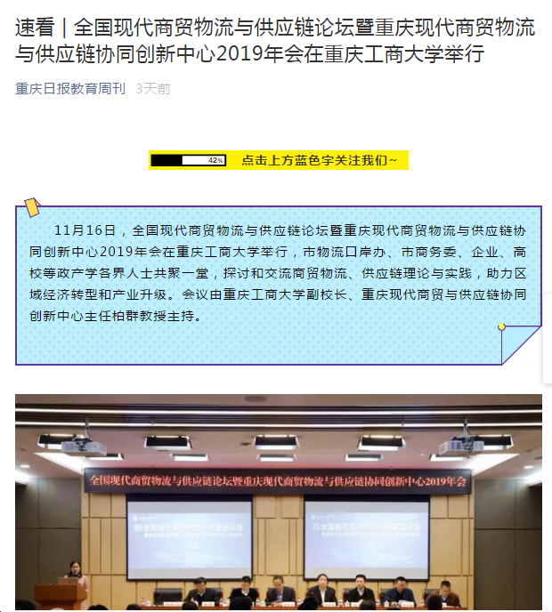 此次会议邀请政产学各界人士共聚一堂,探讨与交流商贸物流、供应链理论与实践,助力区域经济转型和产业升级,为重庆现代商贸物流与供应链协同发展探索了新方向,也为重庆现代商贸物流与供应链协同创新中心的发展目标、工作任务、实施路径等提出了宝贵建议。