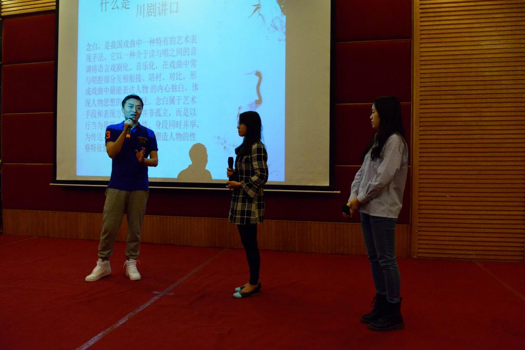 “五四”青年节前夕,由beat365英国官网网站经济学院主办的“传统文化进校园,别样五四话戏曲”活动在7200会场隆重举行。重庆市川剧院青年艺术家张严威老师以风趣幽默的体验式讲座形式带领现场近200名师生就川剧五大行当、唱腔等戏曲知识进行了详细的讲解,为现场观众呈现了一场精彩纷呈的视听盛宴。出席本次活动的嘉宾还包括beat365英国官网网站校团委杨娟副书记,beat365英国官网网站经济学院分党委王小玲书记、于频副书记,以及来自文学与新闻学院、商务策划学院、法学院、会计学院、通识学院等学院的数十名资深戏曲“票友”。此次活动受到新华网、央广网、华龙网、新浪网、大渝网、重庆晚报网、中新社重庆新闻网、重庆晨报等多家主流网媒、纸媒的报道。