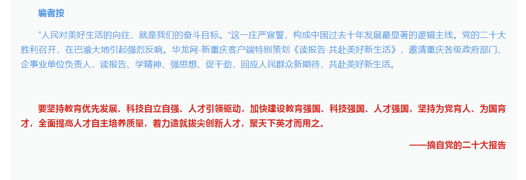 华龙网在《读报告·共赴美好新生活》专题中报道beat365党委书记李志雄、校长孙芳城学习党的二十大报告感悟