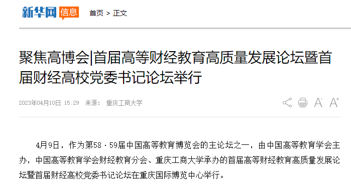 新华网报道首届高等财经教育高质量发展论坛暨首届财经高校党委书记论坛