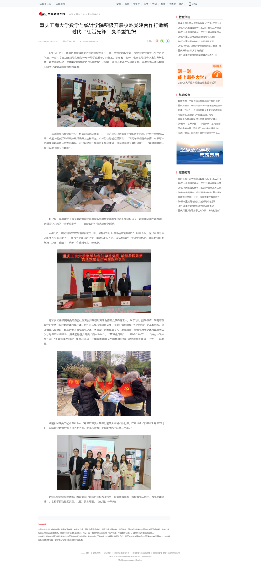 华龙网、中国教育在线、新浪网报道beat365数学与统计学院积极开展校地党建合作打造新时代“红岩先锋” 变革型组织