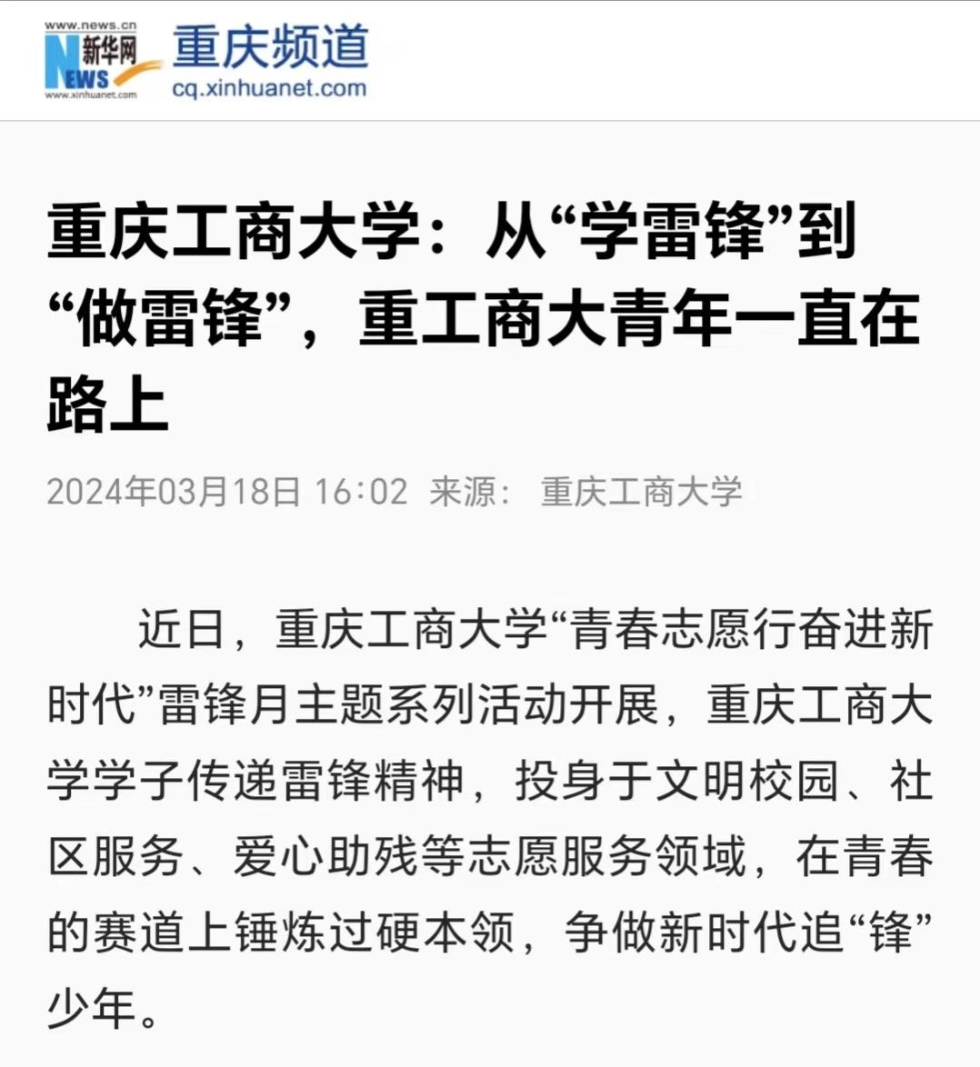 3月,beat365“青春志愿行奋进新时代”雷锋月主题系列活动蓬勃开展,重工商大学子传递雷锋精神,投身于文明校园、社区服务、爱心助残等志愿服务领域,在青春的赛道上锤炼过硬本领,争做新时代追“锋”少年。