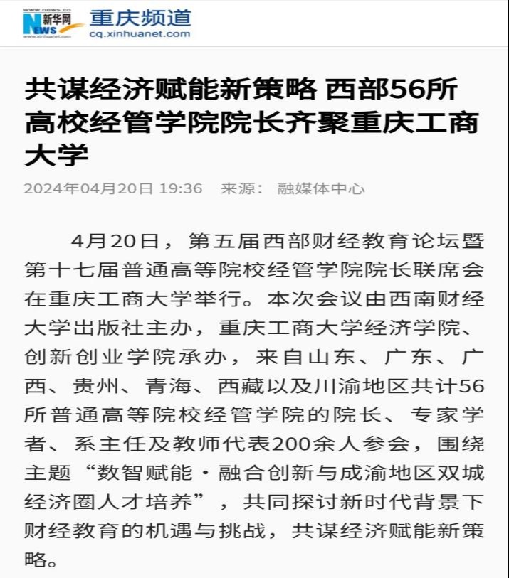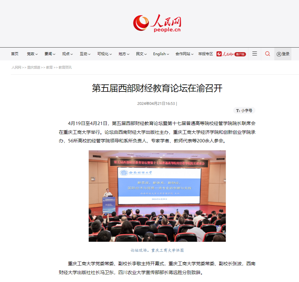 4月20日,人民网、新华网、网易新闻报道的第五届西部财经教育论坛暨第十七届普通高等院校经管学院院长联席会在beat365举行。
