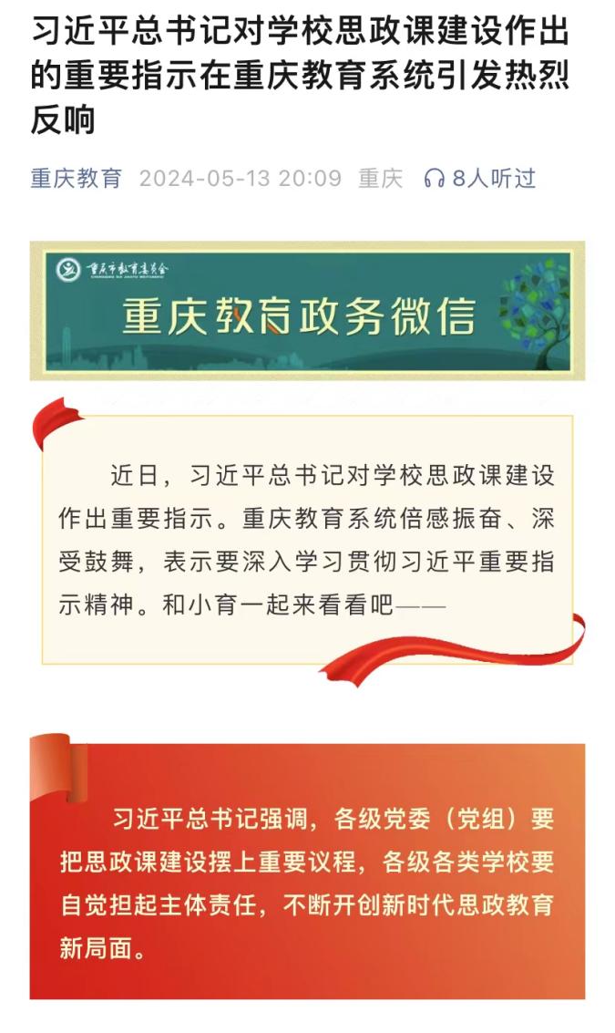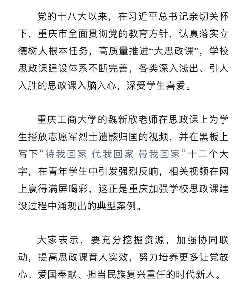 近日,市教委微信公众号刊登beat365教师深入学习贯彻习近平总书记对学校思政课建设作出重要指示精神的心得体会。