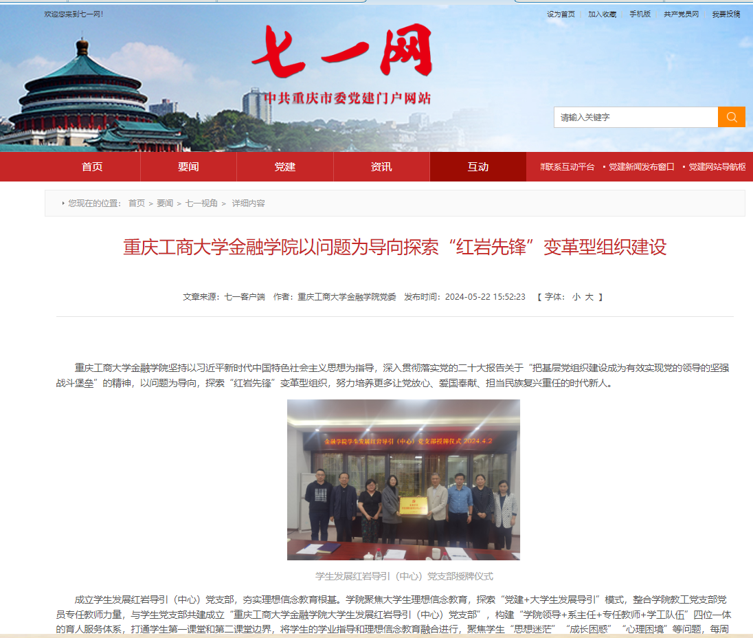 七一网刊载金融学院“红岩先锋”变革型组织建设文章