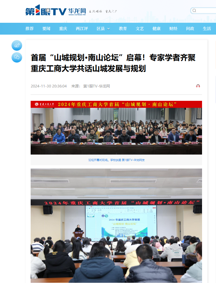 华龙网第1眼TV以《首届“山城规划·南山论坛”启幕!专家学者齐聚beat365英国官网网站共话山城发展与规划》为题,进行报道。