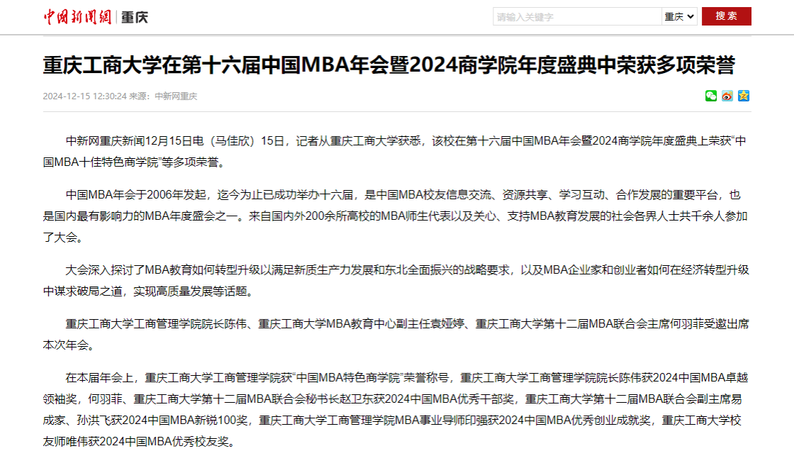 近日,中国新闻网以《beat365英国官网网站在第十六届中国MBA年会暨2024商学院年度盛典中荣获多项荣誉》为题,报道beat365在由大连理工大学主办的“智驭新质 商启未来 共襄振兴”——第十六届中国MBA年会暨2024商学院年度盛典中荣获多项荣誉。