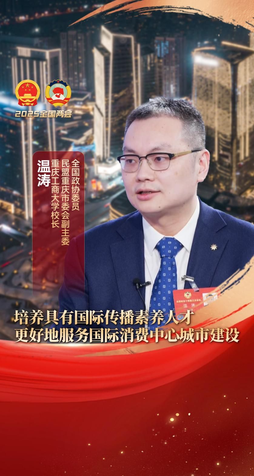 全国政协委员 温涛:对于重庆来说,最重要的人才,当前可能就是具有国际视野的人才,具有国际传播能力、传播素养,具有跨文化沟通能力的这样一种商务型人才,这也是学校培养的一个重点方向。