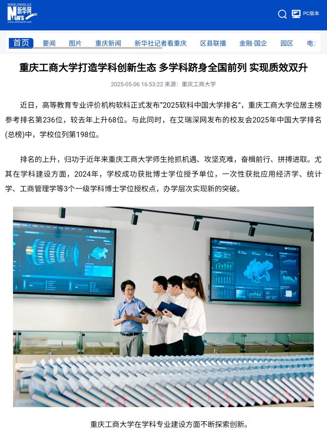 排名的上升,归功于近年来学校师生抢抓机遇、攻坚克难,奋楫前行、拼搏进取,学校在学科建设、专业实践以及科研建设方面取得了卓越成绩。学校将紧扣“学科专业建设年”这一主线,以科技发展、国家战略需求为牵引,不断深化“1+2+2+4+N”学科规划整体布局,实施学科专业建设十大行动计划,高标准完成学科建设各项任务,打造高水平学科专业团队,积极探索学科交叉创新中心建设,深入推进商工融合、多科协同的学科生态体系,以更加昂扬的姿态为建设“教育强国、教育强市”贡献重工商大力量。