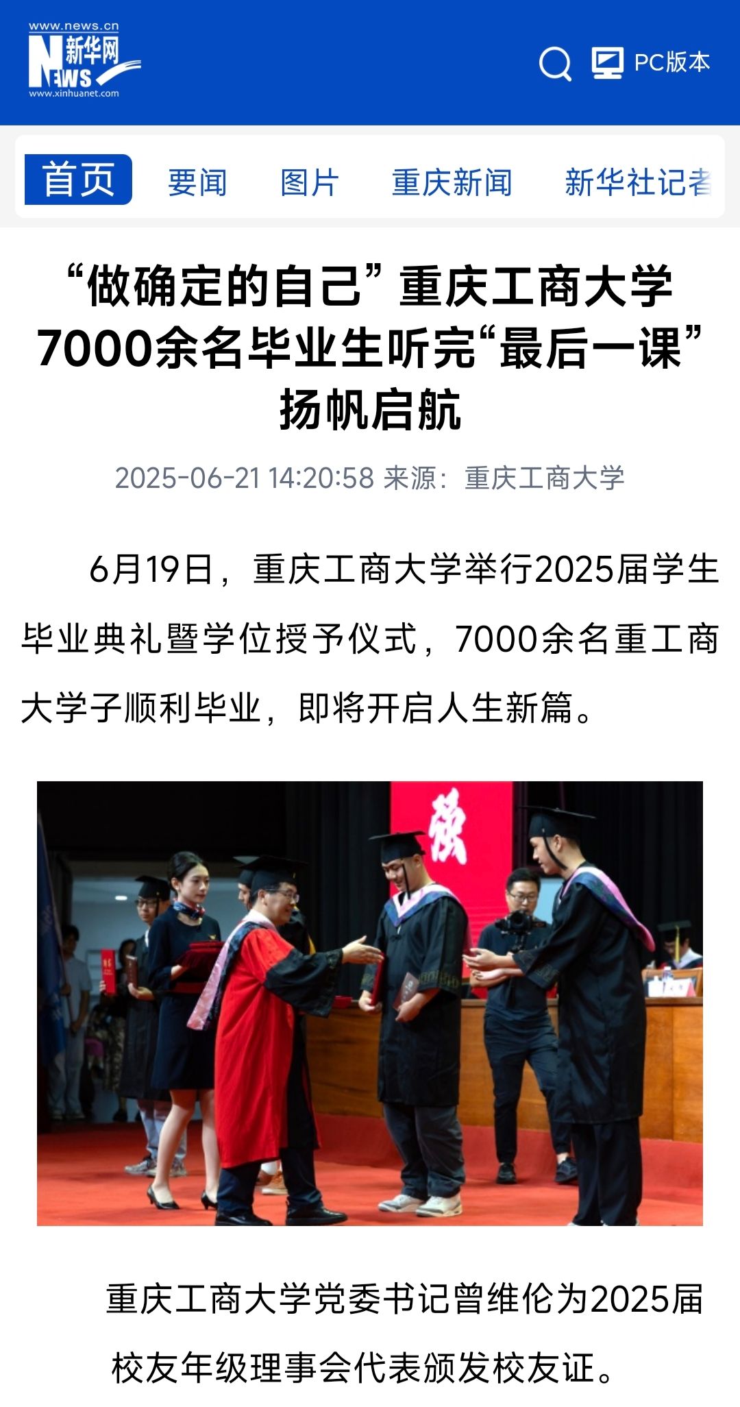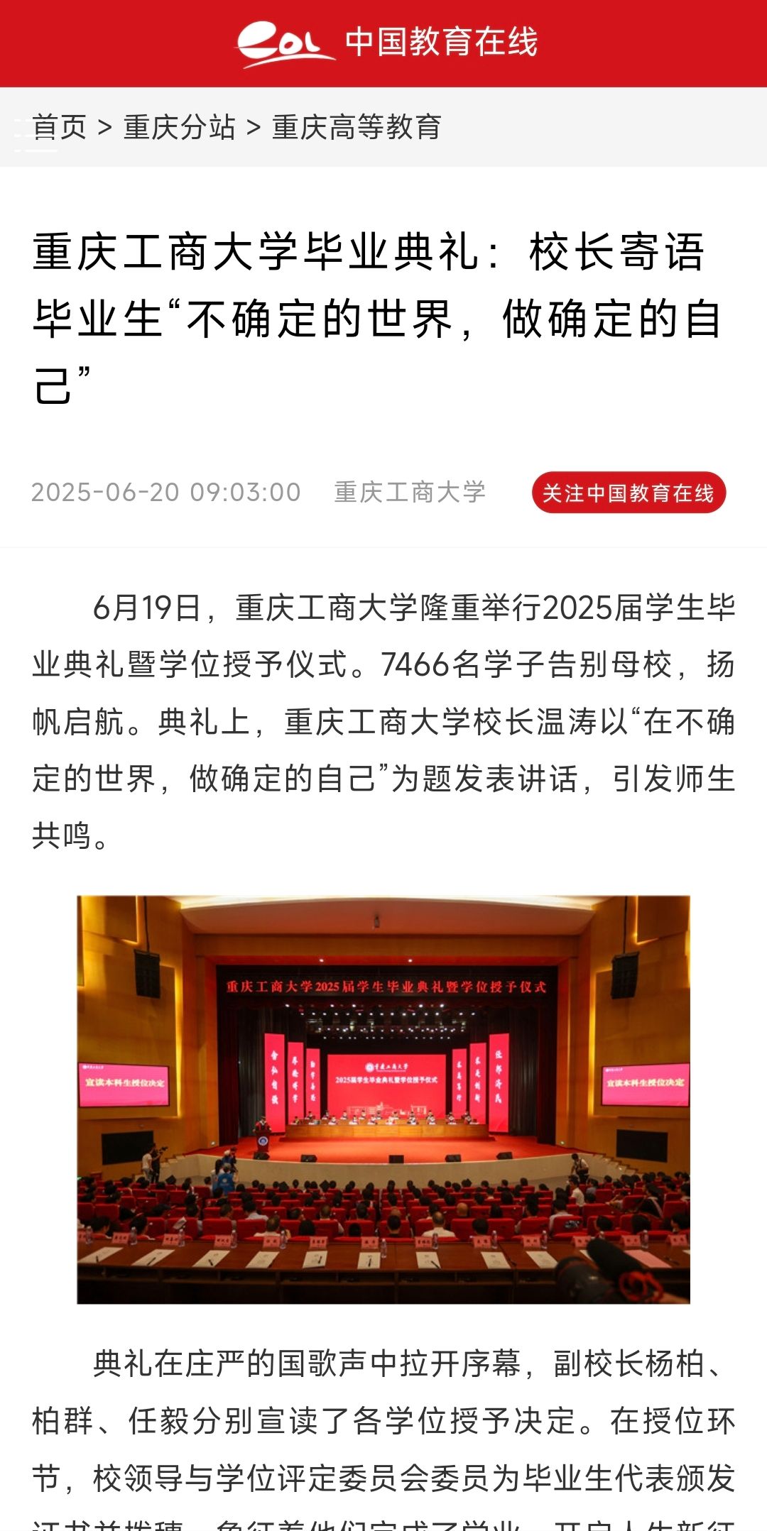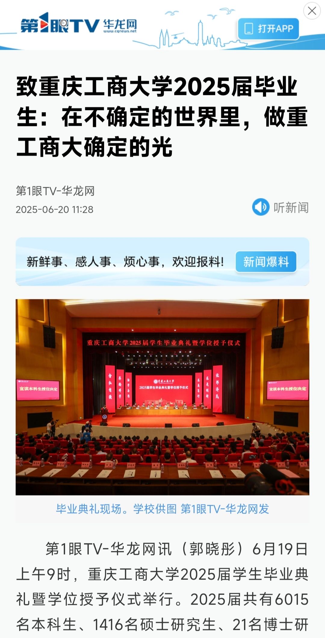 5.华龙网:致beat365英国官网网站2025届毕业生:在不确定的世界里,做重工商大确定的光