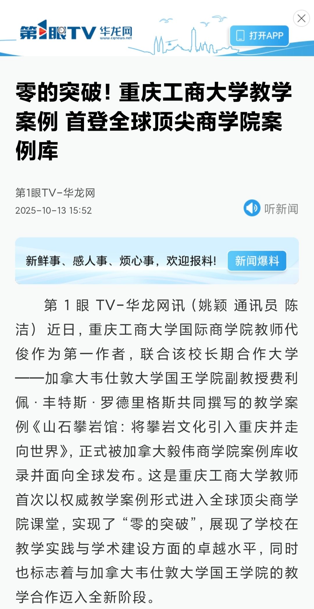 1.新重庆-重庆日报:在渝高校教师教学案例被加拿大顶尖商学院案例库收录