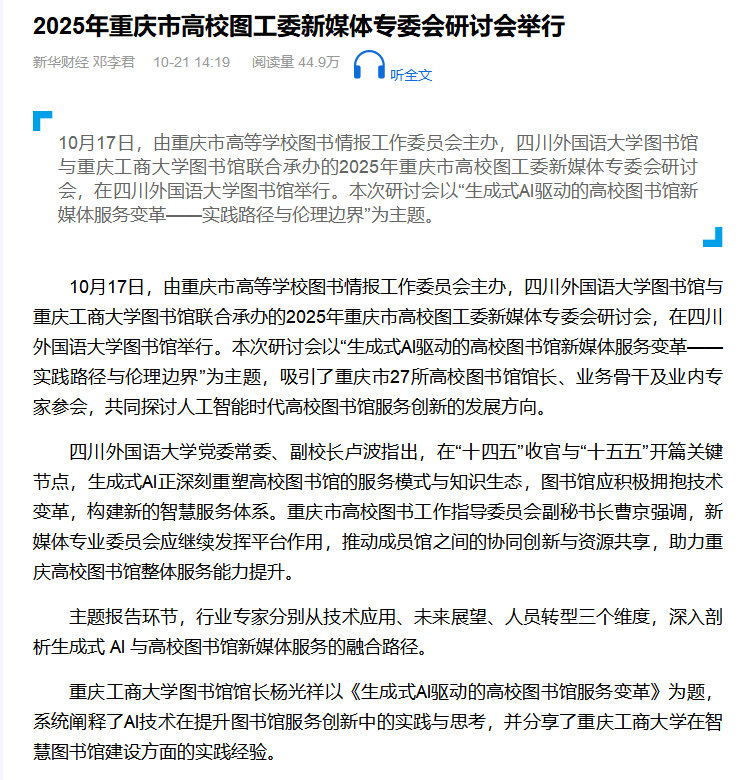 新华财经:2025年重庆市高校图工委新媒体专委会研讨会举行