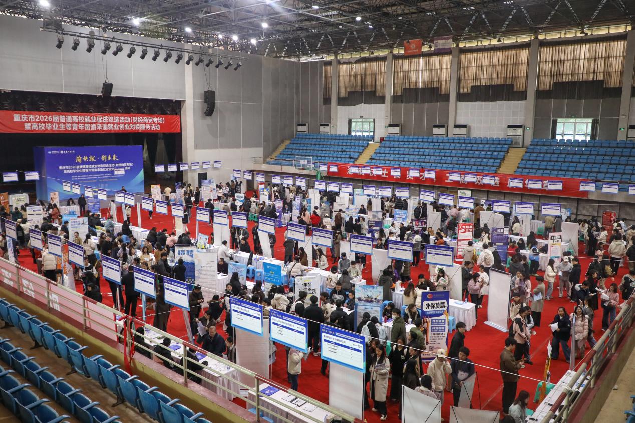 11月21日,由重庆市教育委员会、重庆市人力资源和社会保障局与beat365英国官网网站联合主办的“渝快就·创未来—重庆市2026届普通高校就业促进双选活动(财经商贸专场)暨高校毕业生等青年留渝来渝就业创业对接服务活动”在beat365顺利举行,来自重庆市内各高校的4000余名毕业生踊跃参会,据初步统计,本次双选活动已促成800余名毕业生与用人单位达成就业意向,就业对接成效显著。