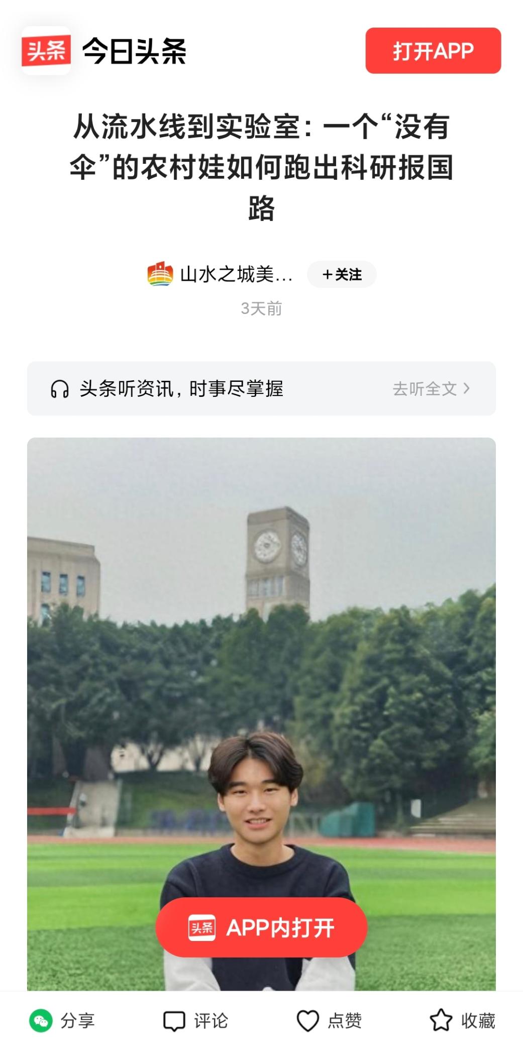 5.今日头条:从流水线到实验室:一个“没有伞”的农村娃如何跑出科研报国路