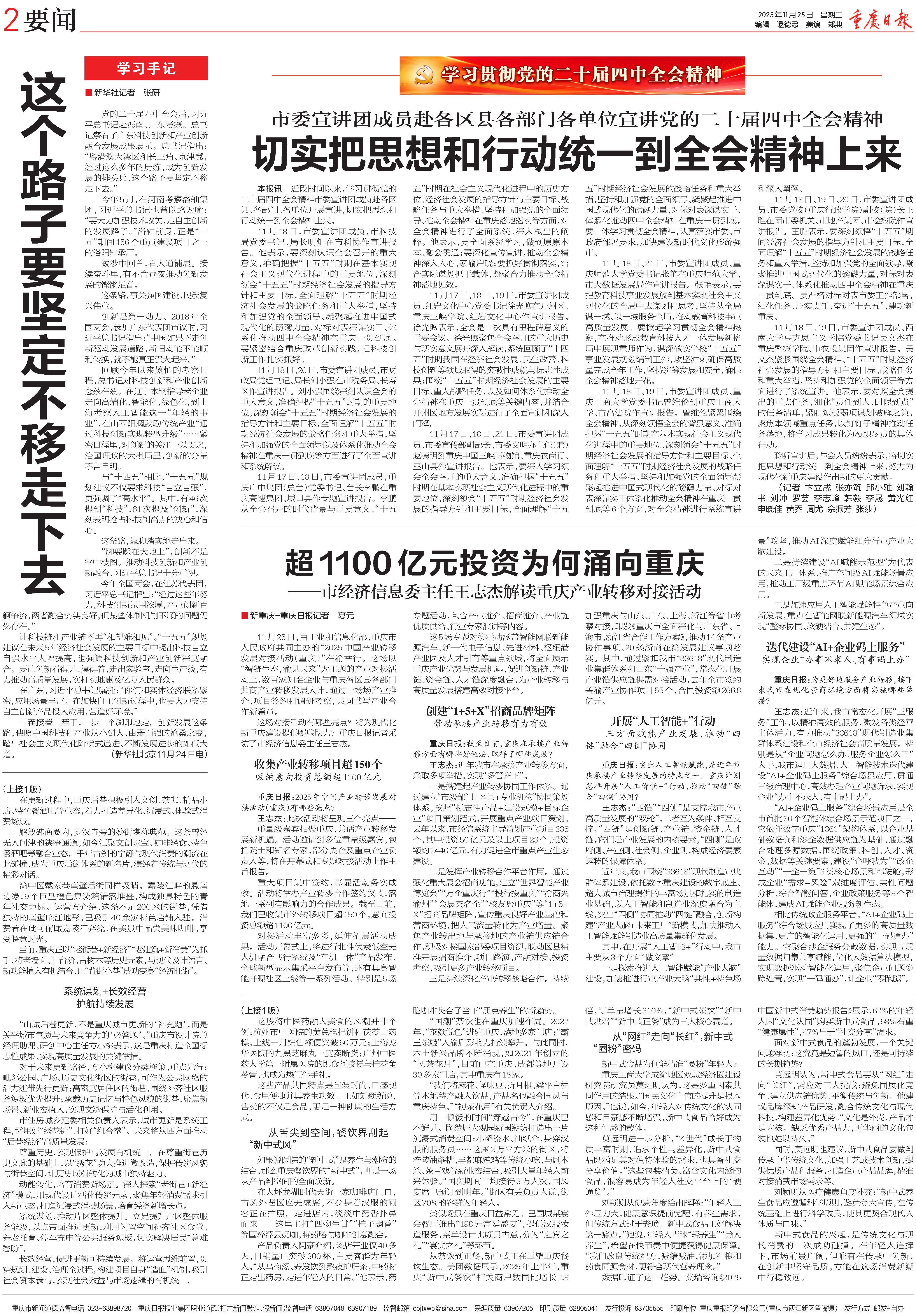 1.重庆日报:市委宣讲团成员赴各区县各部门各单位宣讲党的二十届四中全会精神 切实把思想和行动统一到全会精神上来