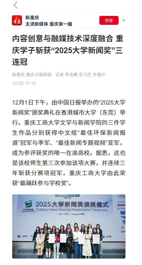 2.新重庆-重庆日报:《内容创意与融媒技术深度融合 重庆学子斩获“2025大学新闻奖”三连冠》