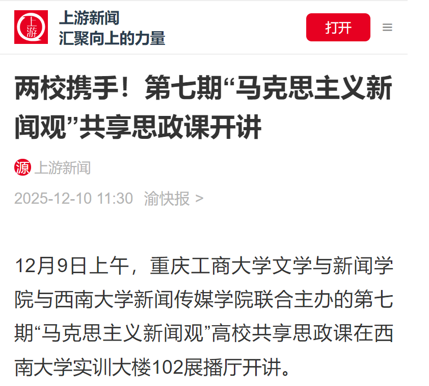 新华网:重庆高校联合开展“马克思主义新闻观”共享思政课 http://cq.news.cn/20251210/2c34406066e348f8ac295c67c7b737f6/c.html