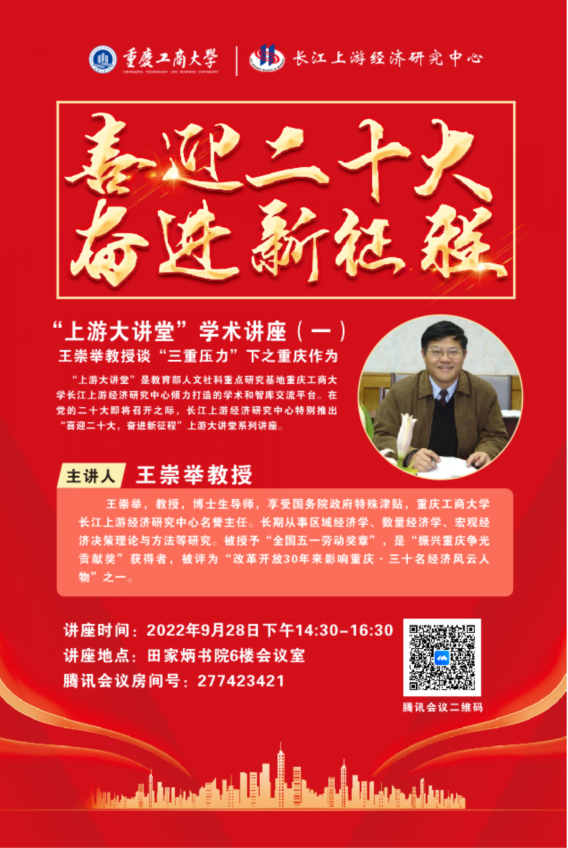 “上游大讲堂”是教育部人文社科重点研究基地beat365英国官网网站长江上游经济研究中心倾力打造的学术和智库交流平台。在党的二十大即将召开之际,长江上游经济研究中心特别推出“喜迎二十大,奋进新征程”上游大讲堂系列讲座。