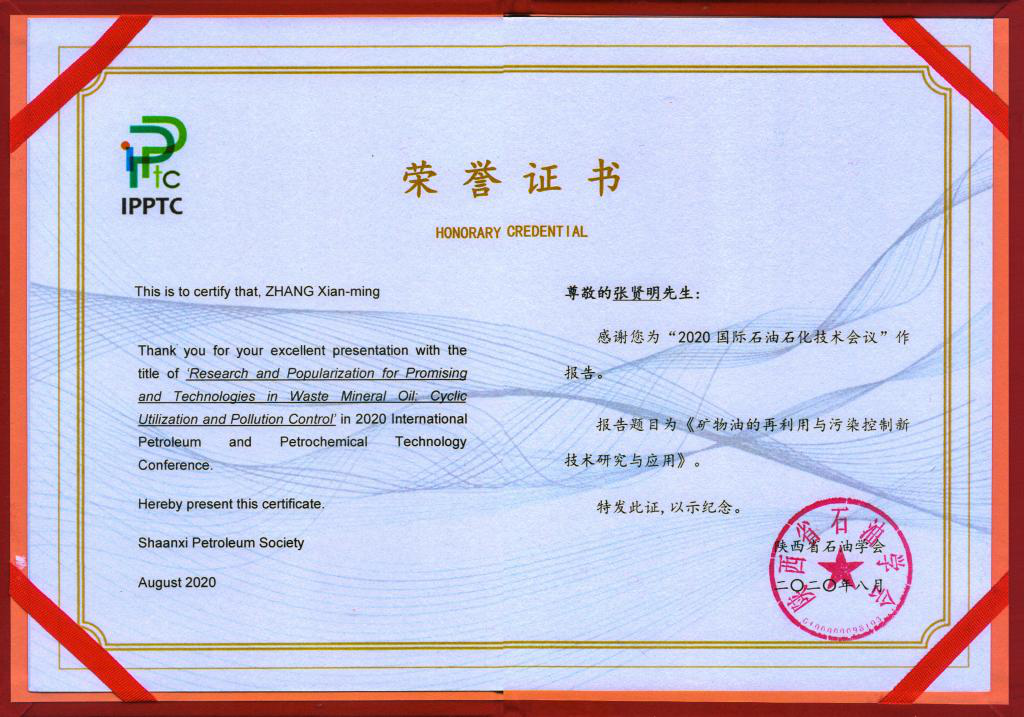 beat365教育部废油工程研究中心首席专家张贤明教授,应邀以“矿物油的再利用与污染控制新技术研究与应用”为题报告了beat365研究新成果,受到大会高度关注,大会向其颁发了学术报告荣誉证书。