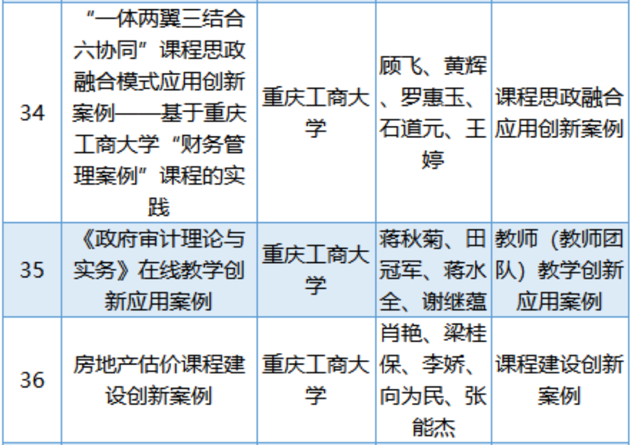 beat365《“一体两翼三结合六协同”课程思政融合模式应用创新案例——基于beat365英国官网网站“财务管理案例”课程的实践》、《<政府审计理论与实务>在线教学创新应用案例》、《房地产估价课程建设创新案例》三项成功入选。