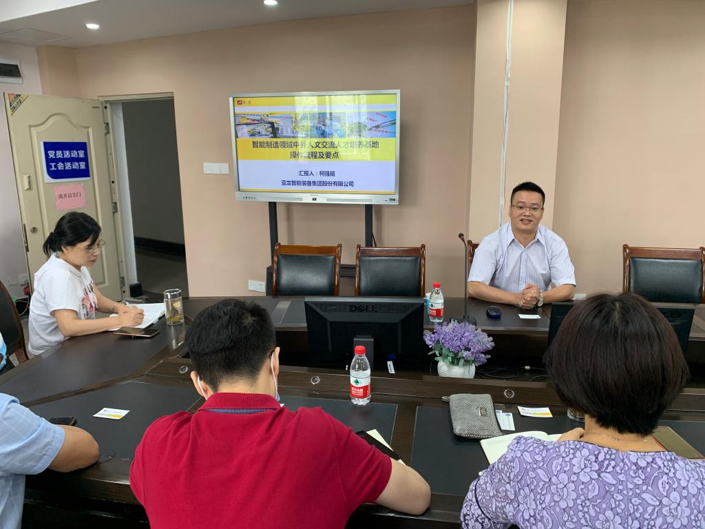 首先,柯强挺对教育部中外人文交流中心的成立、主要工作职责等方面做了简要介绍后,就项目概况、项目建设流程、项目合作意向三个方面的内容进行了介绍,该中心着力于帮助高校搭建深化产教融合平台、“双语、双师”教师队伍建设、开发人文交流课程、共建教学资源、促进国际合作交流、开展课题研究、开展服务国际就业创业等工作;他还就本次的智能制造领域中外人文交流人才培养基地项目的意义、定位、工作路径等进行了详细的解读,并期望与机械工程学院合作开展国家重点研发计划“智能机器人”、数字双胞胎、教育部中外人文交流中心课题三个主要项目。