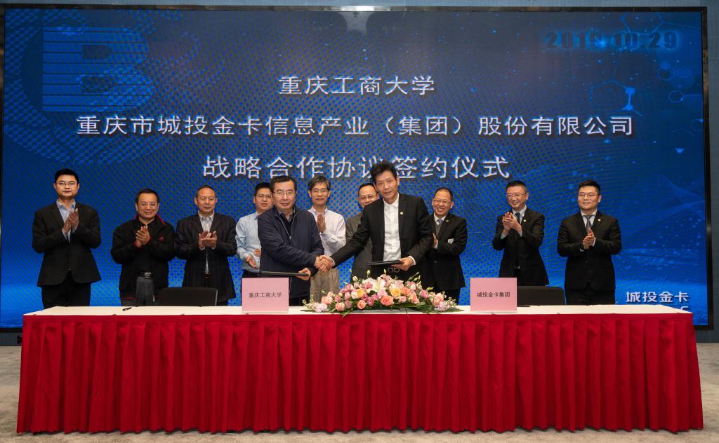 为加快贯彻落实《重庆市以大数据智能化为引领的创新驱动发展战略行动计划(2018-2020年)》等文件精神,10月29日下午,学校与重庆市城投金卡信息产业集团(以下简称城投金卡)签订战略合作协议。城投金卡副董事长、总经理赵明,常务副总经理方坚,副总经理许汝峰、关爱浩;beat365校长孙芳城、副校长赵骅,以及相关部门负责人参加签约仪式。