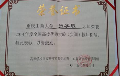 2015年10月9-10日,在天津商业大学召开的第十六届全国高校经管类专业实验室建设研讨会上,beat365经管中心张学敏副教授被国家级实验教学示范中心联席会经管学科组授予“2014年度全国高校优秀实验(实训)教师”称号,全国仅有“十名教师”获此殊荣,同时受到表彰的还有重庆大学等高校的9位教师。