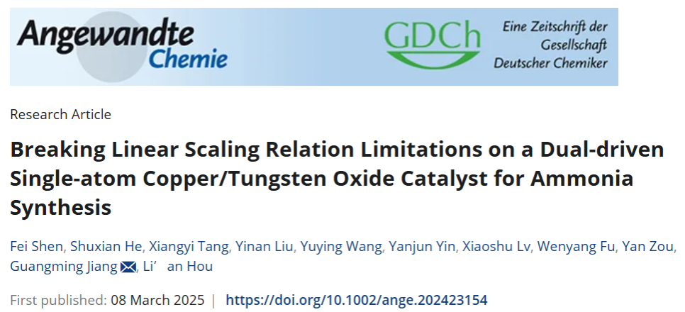 利用可再生的电能将废水中硝酸盐转化为高附加值氨(NO3RR),为氮资源循环利用提供了一种绿色高效的解决方案。金属铜是较优的NO3RR催化剂,但因对氮中间产物吸附较弱且质子供应不足,导致亚氮积累和产氨速率不足。单原子铜由于其独特的配位环境和电子结构对氮中间产物有较强的吸附,加快反应速率,但是单原子在多电子/质子的反应中单个活性位点会受到数量-活性的线性关系限制,只能通过构建双原子催化剂来打破线性限制,但该催化剂合成复杂,成本较高,不能大规模推广。