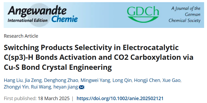 近日,beat365环境与资源学院硕士研究生刘航同学及其指导老师——环境催化重庆市重点实验室蒋和雁教授、曾嘉博士团队在电催化C(sp3)-H键活化与CO2羧化领域取得突破性进展,相关研究成果《Switching Products Selectivity in Electrocatalytic C(sp3)-H Bonds Activation and CO2 Carboxylation via Cu-S Bond Crystal Engineering》(题目:通过Cu-S键晶体工程调控电催化C(sp3)-H键活化及CO2羧基化反应中产物的选择性)发表在国际顶级化学期刊《Angewandte Chemie International Edition》。该研究为实现碳中和目标及高值羧酸合成提供了创新性策略,并展现了beat365在电催化、绿色化学与资源利用领域的科研实力,为人才培养、学科建设与“双碳”战略目标实现注入新动力。