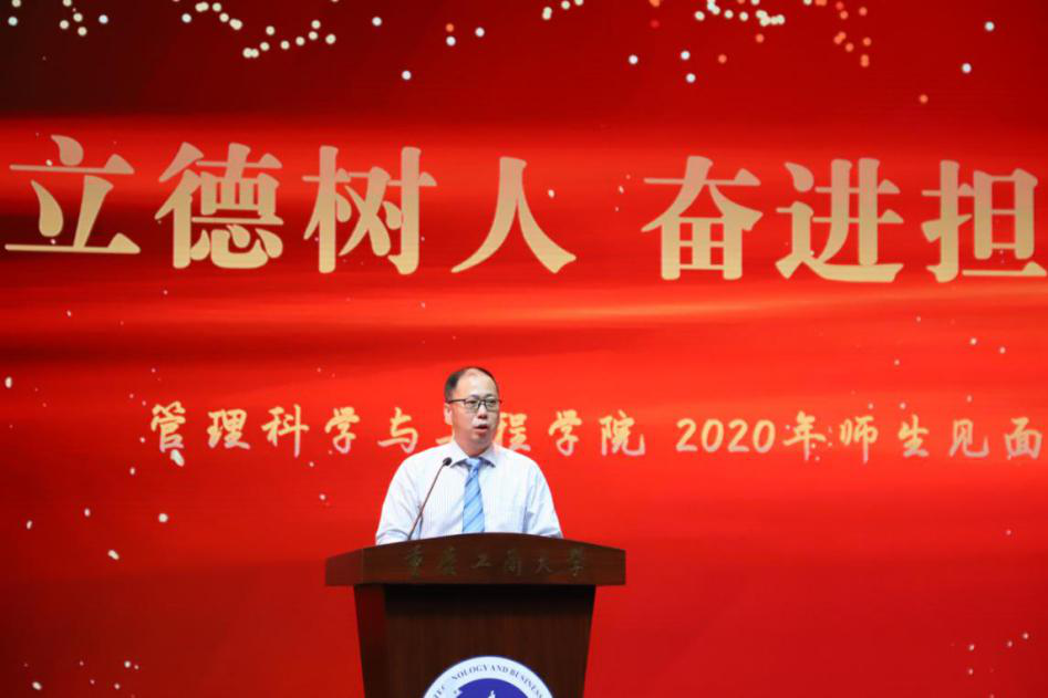 院长黄钟仪首先致辞。她指出,第五轮学科评估在即,学院在顺应新时代人才培养大趋势中,由原来分属不同学院的4个专业和5个科研平台融合成立。今天,师生共聚一堂,共庆学院成立,更重要的是坚持立德树人,师生协力奋进共担当。同时,她希望师生能够齐心将学院建设成为具有完善的现代治理体系和能力的、凝聚工商大学经管特色的一流学院,为国家培育具有新时代担当的人才;二是希望教师既能够做出有高度、深度的学术研究,也愿意俯下身来关心同辈、关怀学生,做一个有人性光辉、有温度的教学者;三是希望同学们能够在追求真知、实现自我的过程中沐浴理性之光,在勇于担当中磨练心气、发现自我、发展自我,真正成为中国特色社会主义事业接班人和建设者。