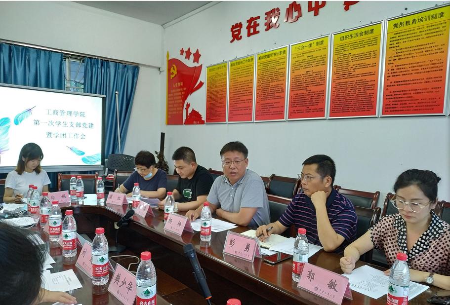 7月16日下午,工商管理学院在明德楼3021会议室召开了第一次学生支部党建暨学团工作会。此次会议由学院副书记郭敏主持,学院党委书记、副院长彭勇,院长杨柏,党委副书记郭敏,专职组织员翟红,副院长陈伟,综合办主任袁媛及学院全体辅导员参加了会议。