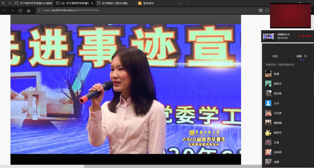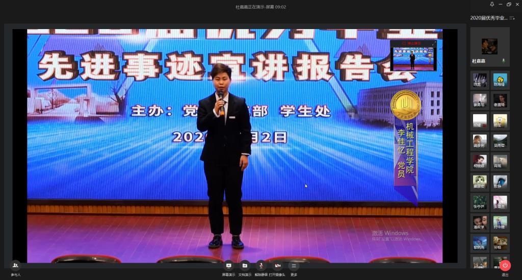18级辅导员李菁谈到:这场“屏对屏”的特殊宣讲会,让每位师生都能一睹优秀重工商大学子的风采。在12个满载成长、奋斗、超越、逐梦的青春故事里,我们看见了一场场经历四年时光,从懵懂到成熟、从迷茫到坚定的美丽蝶变。对于一名辅导员而言,优秀毕业生先进事迹宣讲会就是一个生动的素材库,让更多学生汲取榜样的力量,努力从今天的“观者”成为明天的“主讲人”,让优秀流行起来!
