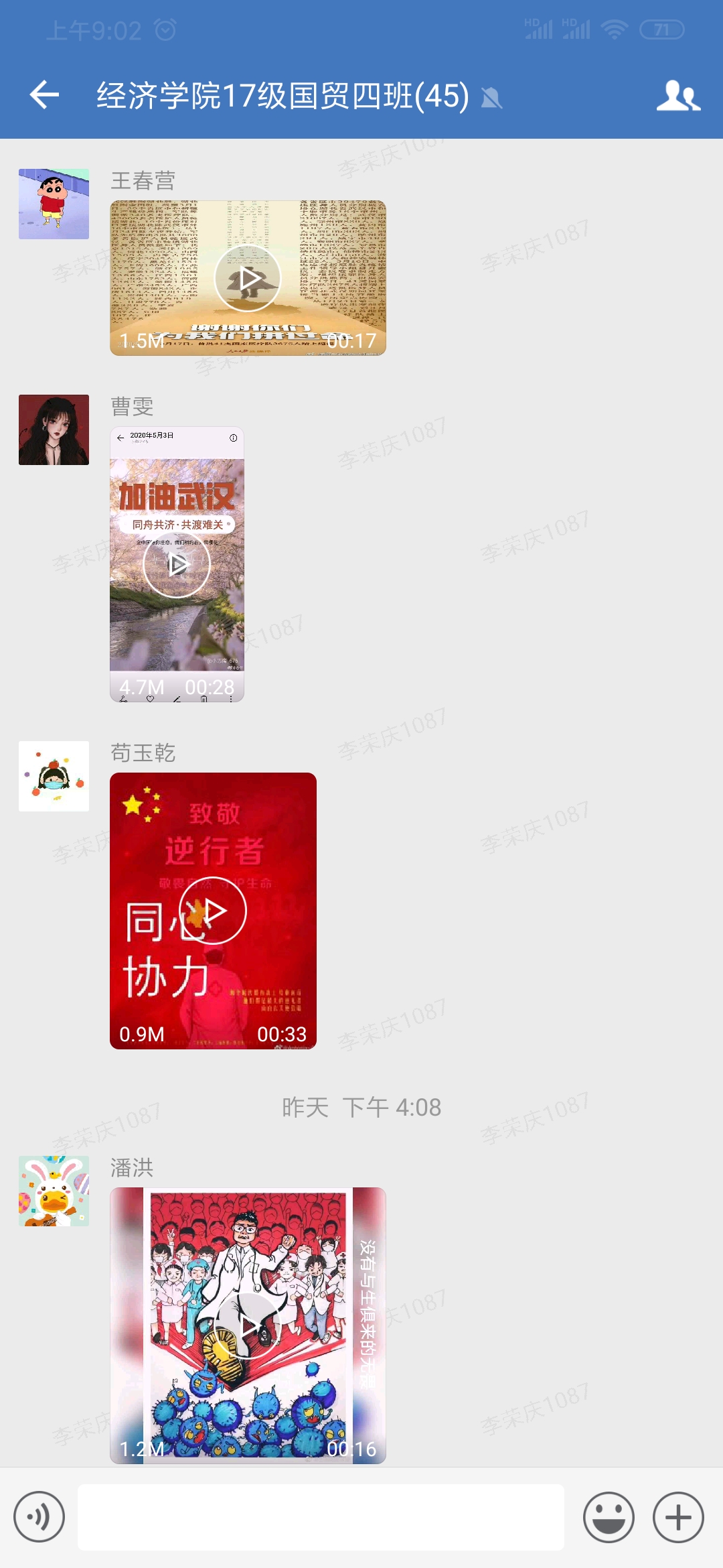 “青春告白祖国,我想对祖国说:何其有幸,生为中华儿女。天灾人祸,有你在便得安心。神州大地团结一心,愿我国早日恢复,繁荣昌盛。”在这个特殊五四青年节,大学生团员们虽然暂时不能返回校园,但激情与活力未减。经济学院分团委积极响应校团委号召,举办以“学习五四精神,青春告白祖国”为主题的活动,组织团员们学习习近平总书记五四讲话精神,并运用企业微信、QQ等各种线上平台的交流群,组织团员们以青春之我,告白祖国、告白共青团、告白奋斗中的广大中国青年,字里行间都流露出团员青年最真挚的感情。